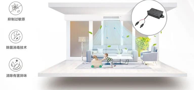 美的TR+ mini Pro系列家用中央空调内机搭载净离子杀菌模块,通过正负离子放电实现高效灭菌,一次灭菌效率超过99%,焕新室内每一毫米空间,自由呼吸纯净空气。