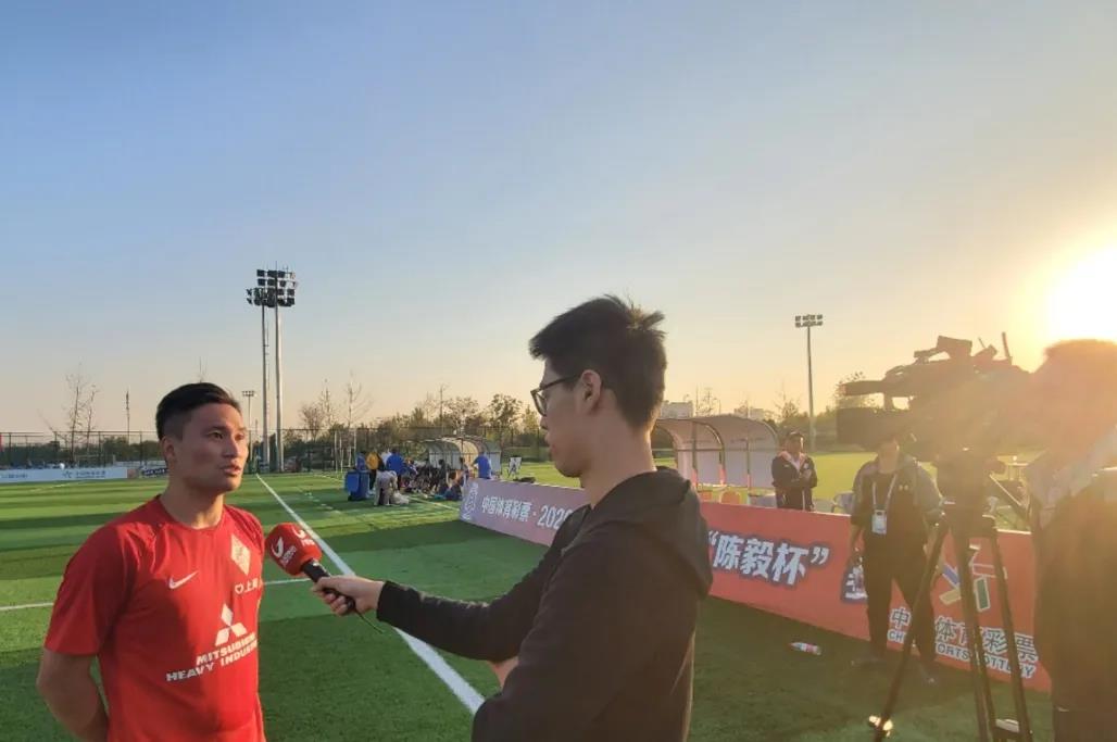 不止球迷!在场边,上海电视台及多家媒体也都来到了现场观赛并对本场比赛做出线上直播。赛后,五星体育也邀请了飞狮队场上队长沈佳豪进行了采访。