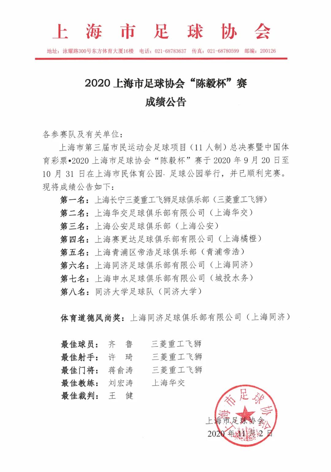 2020年10月31日下午14时30分,2020上海市足球协会“陈毅杯”决赛在上海市民体育公园•足球公园A6场地如期而至。