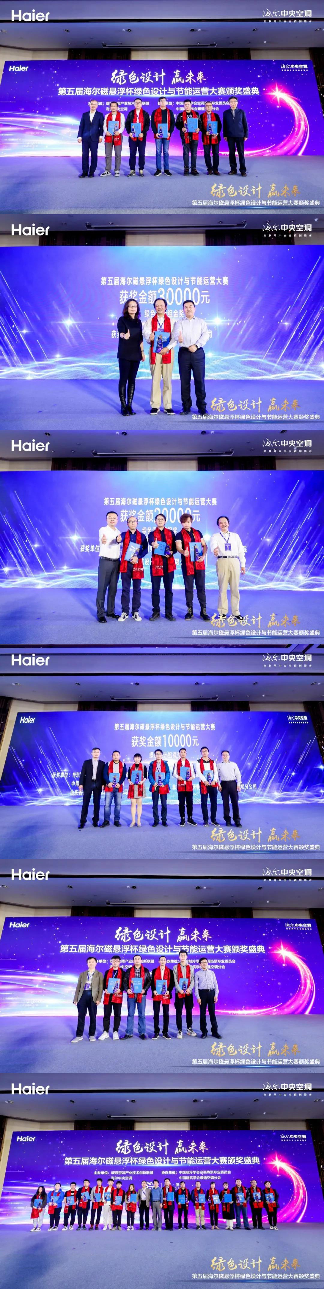 “绿色设计赢未来”为主题的第五届“海尔磁悬浮杯”绿色设计与节能运营大赛,历时九个月,覆盖全国四大赛区,累计参赛作品3500余份。由17位国家级专业评委通过对申报项目的技术创新性、行业代表性、节能性和运行使用情况为标准进行评估,最终评选出节能运营奖5项;绿色设计组,金、银、铜、先锋、优秀奖69项;学生组50项(含指导老师11项)。