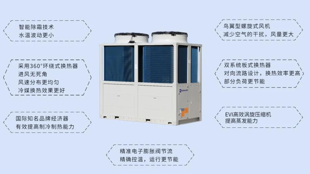 机组采用欧洲先进成熟的低温热泵技术,以及名优部件,保障机组稳定运行;