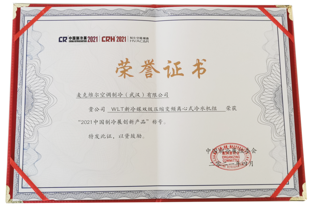 科技创新 | 麦克维尔WLT/MDX-C喜提2021年中国制冷展“创新产品奖”