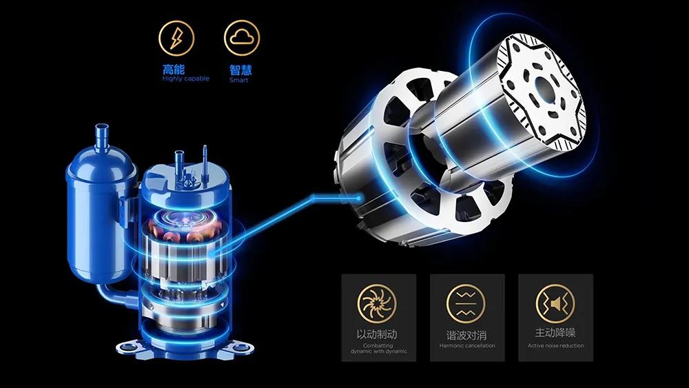 为追求制冷效率的进一步提升,GMCC还从家用空调新能效专用变频压缩机的电机层面进行升级:采用高饱和电机和圆形大转子设计,实现系统APF能效提升6%,压缩机能效提升8%。