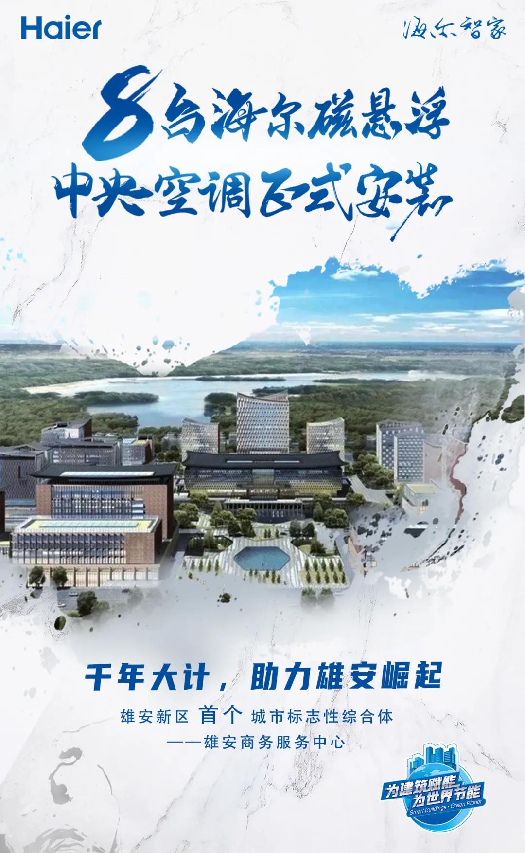 近日,海尔磁悬浮中央空调正式入驻雄安新区首个城市标志性综合体——雄安商务服务中心并完成安装,凭借高效节能、稳定运行赋能雄安千年大计,彰显民族品牌的担当,为这一历史性战略选择做出贡献。