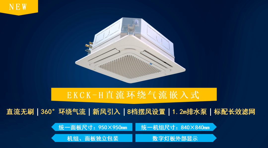 EKCK-H环绕气流嵌入式室内机以高档、节能为核心,提供高档大气的外观设计和丰富的内部配置,在炎炎夏日,为您营造宁静、舒适、健康的室内环境,是一款在外观、配置、智能等方面具有极大竞争力的高端智慧云多联室内机。