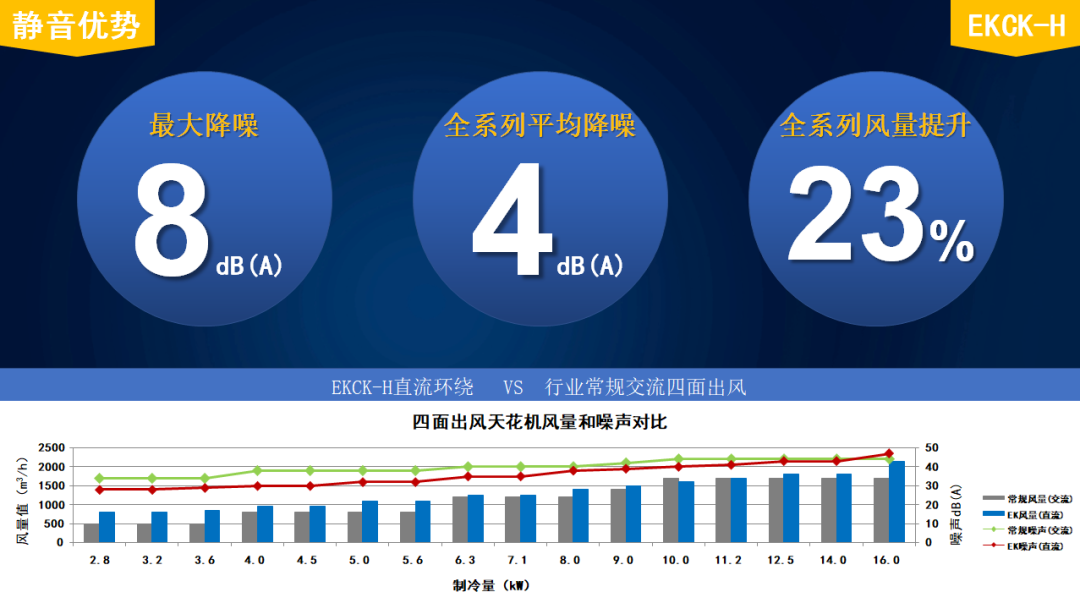 ➣风量大幅提高,最大提升70%,全系列平均提升23%,实现高天花板送风,应用更灵活。