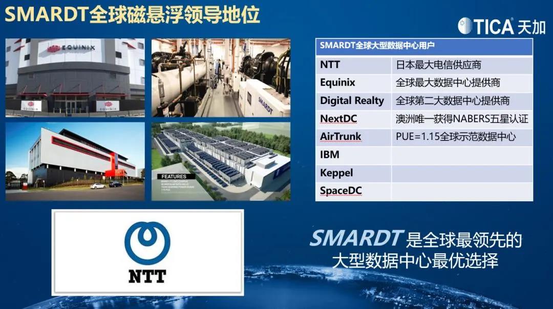 天加于2018年并购加拿大磁悬浮冷水机组公司SMARDT,其全球磁悬浮冷水机组市场占有率超过30%。天加打造的“全生命期成本更低” 系统高效机房占领了行业的技术制高点。
