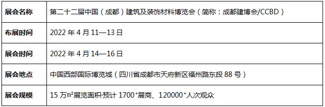 中国·成都建博会先后与中国建筑材料流通协会、中国五矿化工进出口商会达成战略合作,2022年将引入更多行业头牌企业入驻中国·成都建博会平台,将产品展示与前沿理念融合一体式呈现。