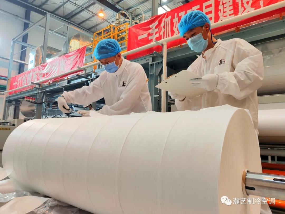 熔喷布高速纺在生产过程中要求丝条的冷却速度均匀,凝固点位置固定,防止收到周围空气流的影响而产生强烈的晃动。由于高速纺的熔体挤出量大,释放热量也多,故系统降温设备对于生产线的效率起到了很关键的作用,瀚艺空调推出专为熔喷布生产线打造的水冷螺杆机组,目前已服务包括中石化在内的多家口罩生产企业。