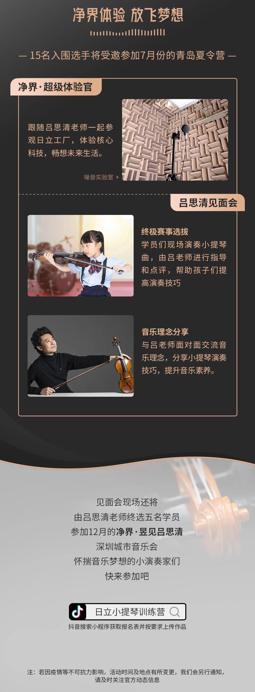 音乐是美好生活的调味剂,日立中央空调是美好生活的实践者。日立联合吕思清,共同打造青少年小提琴训练营,关爱青少年茁壮成长,助力更多人实现音乐梦想。