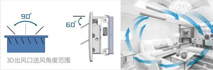 风感太强总是会引起体感的不适。约克中央空调采用行业领先的3D立体送风口,横向-45°~45°,纵向0°~60°摆风,均可独立控制角度,送风距离较传统模式增加20%,全屋无差别柔和送风,呵护老人孩子细节体验,带来舒缓的家居享受。