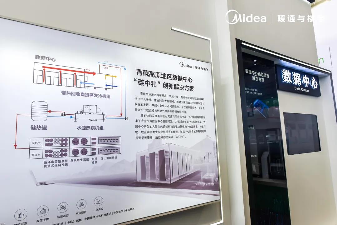 美的针对青藏高原地区数据中心打造的“碳中和”创新解决方案,利用数据中心机房余热为热源,通过热泵机组进行热量回收储备,在拉萨地区高海拔、低温、低湿的气候下,为农业、养殖业相关设施供暖,实现清洁能源的再利用。在降低数据中心PUE的同时,实现数据中心综合能源利用效率显著提高,推动高原地区农业的生产和发展。