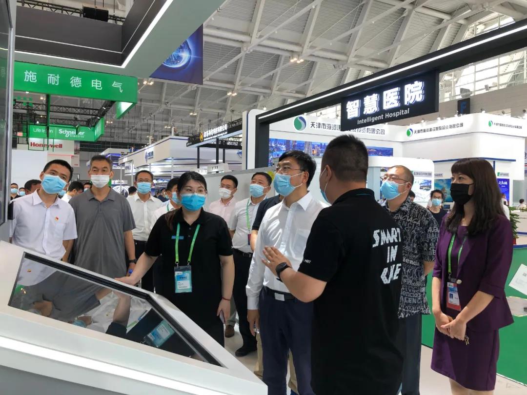 6月27日上午,天津市西青区区委副书记、区长、党组书记白凤祥、天津市西青区区委常委、区委办公室主任杜全胜等区领导一行莅临美的展台参观考察,详细了解美的针对不同场景打造的绿色智慧建筑解决方案。