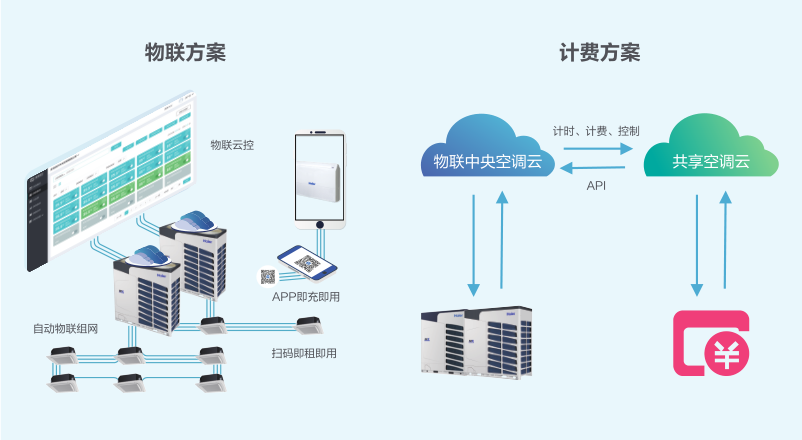 海尔物联多联机发布全球首个物联多联机云服务平台,可实现云端监测,实时查看设备运行状态,以及可进行能耗对比分析,对电费进行实时预估,远程可视,使用省心。另外,还可实现按时长、按流量分户、分区计量,一站式计、查、存、缴自动结算服务,物联计费,按需定制。