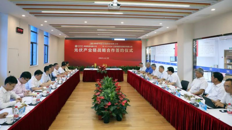 6月30日,双良集团旗下上市公司双良节能系统股份有限公司(简称“双良节能”,股票代码600481)与中信泰富下属公司新力能源开发有限公司(简称“新力能源”),江苏爱康科技股份有限公司(简称“爱康科技”)达成光伏产业链战略合作协议。三方将充分发挥各自在光伏发电产业链上的技术优势、规模优势和地域优势,强强联合,协同发展,共同推进光伏发电产业的技术进步和降本增效,推动光伏发电产业的创新升级和持续增长,为贯彻落实“能源革命”战略决策部署,助力“碳达峰”“碳中和”目标贡献力量。