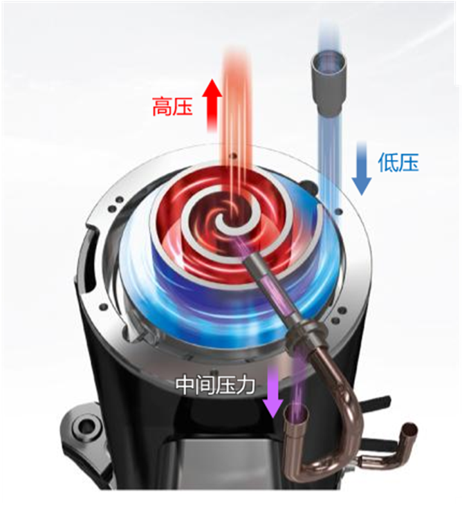 项目位于关中平原腹地,冬季寒冷。考虑制热的需求,项目采用LG MULTI V 5 PRO全变频多联机,该机组配备喷气増焓功能涡旋式压缩机,通过二次压缩,增加了冷凝器中的制冷剂流量,加大了主循环回路的焓差,从而大大提高了压缩机制热性能。同时MULTI V 5 PRO机组在行业首次采用温度和湿度双感知控制,冬季实时感知室外湿度,使得室外机蒸发温度高于大气的露点温度,室外机不易结霜,延长制热时间。