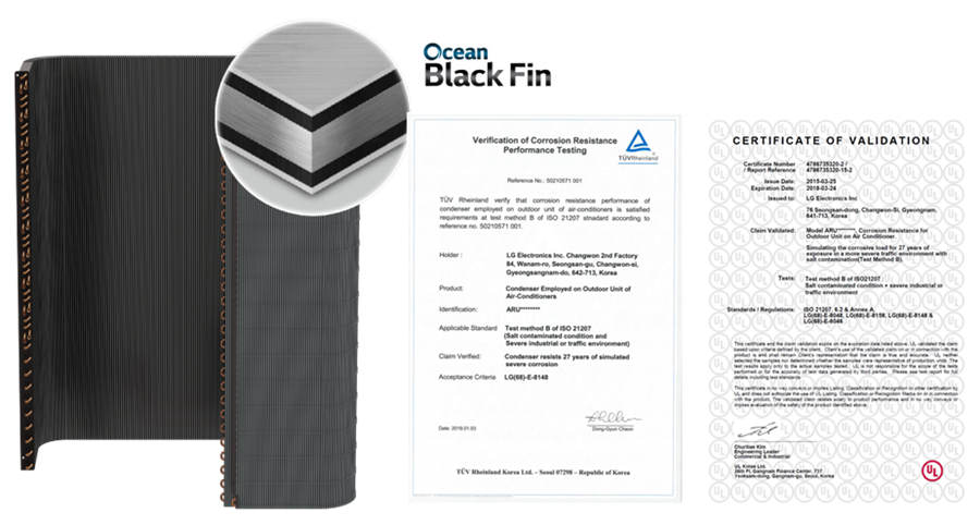 室外机采用行业最新技术的黑色热交换器,具有超强的耐腐蚀性能,可大大延长室外机的寿命,该技术获得UL和TUV的认证。