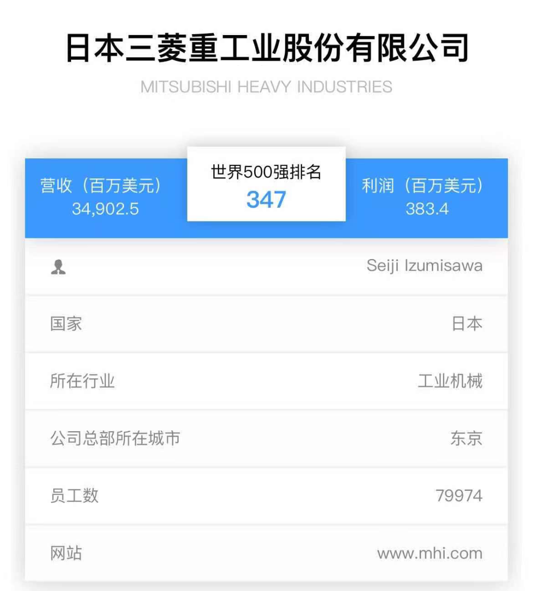 2021《财富》500强榜单发布:三菱重工集团再次登榜