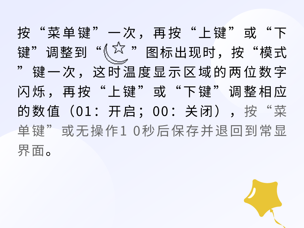 睡眠模式会根据人们睡眠的生理机制,自动调整设定温度,以免感冒发烧。