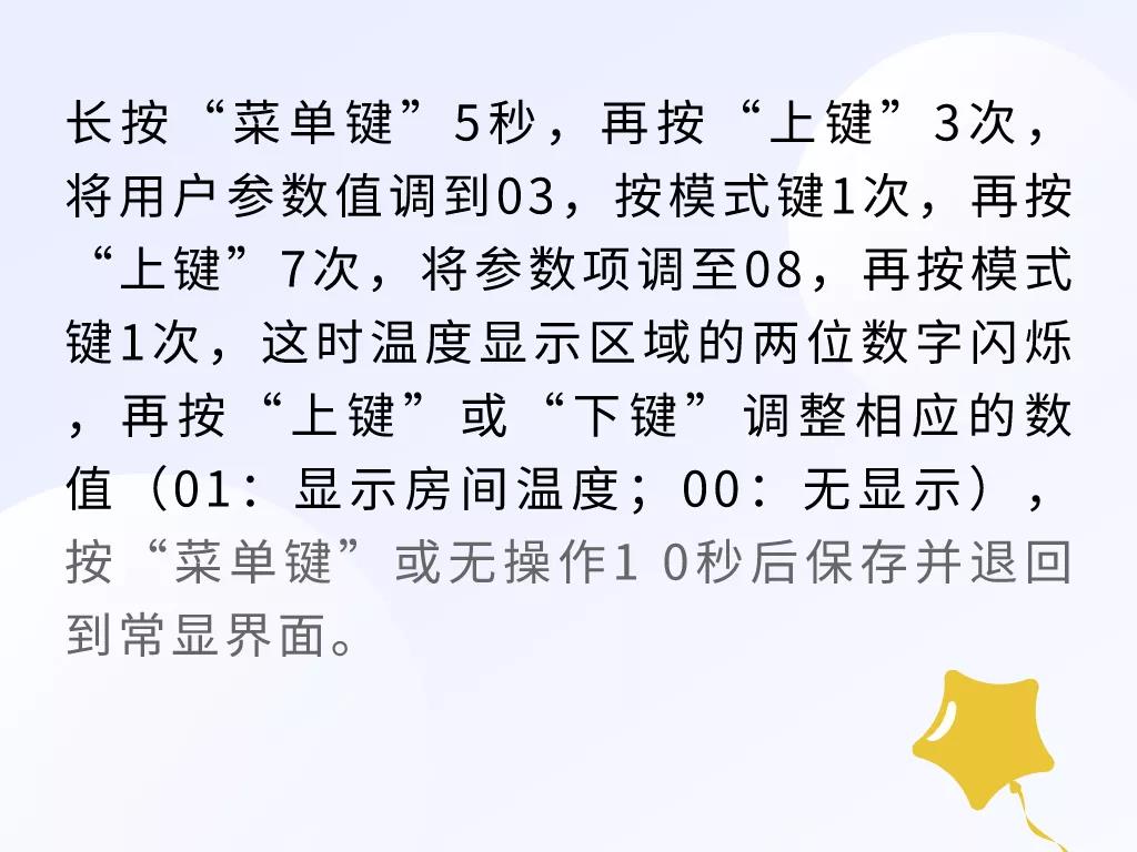 AC8800可设置关机后显示“房间温度”,代替“温度计”使用。