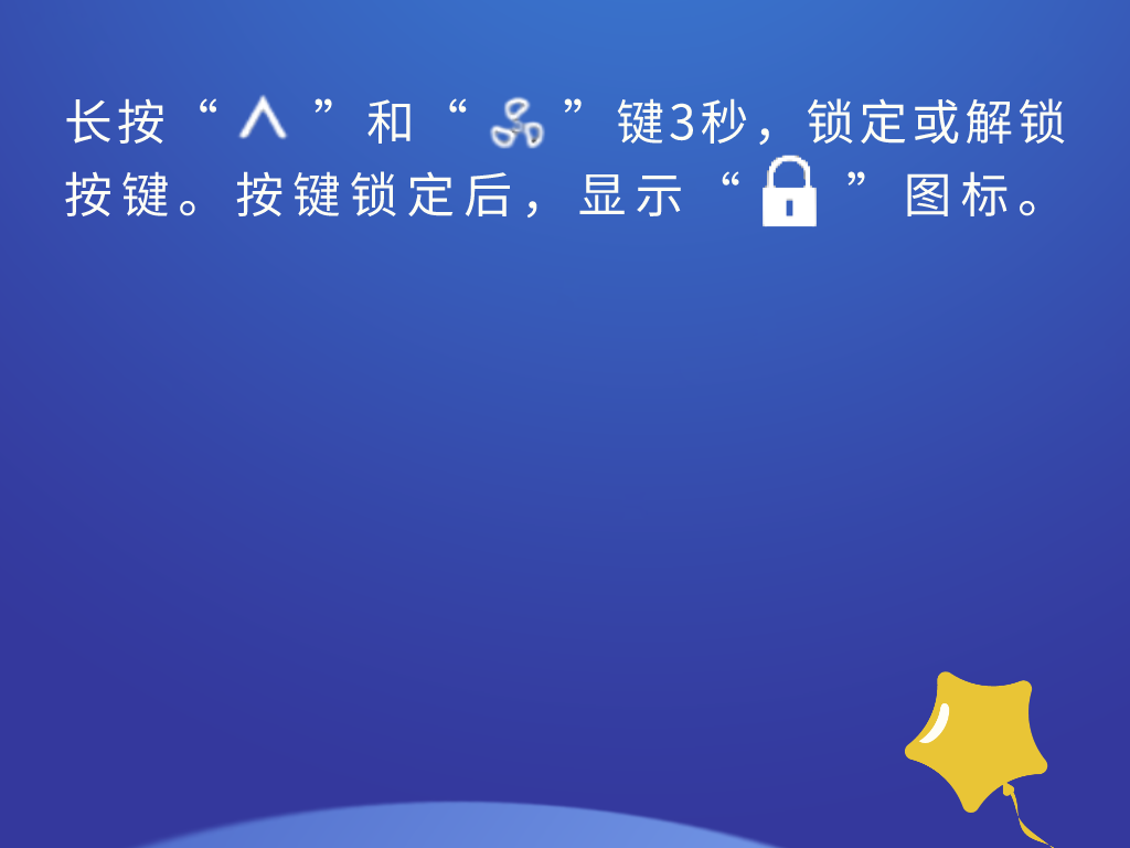 AC8800可锁定或解锁按键,防止他人误操作空调,锁定后,按键无效。特别是有儿童的家庭,一般家长都会提前给孩子设定好合适的空调温度,防止温度过低,造成身体着凉,还有商场等人流较为密集、无需自行调节温度的公共区域,这个功能真香了!