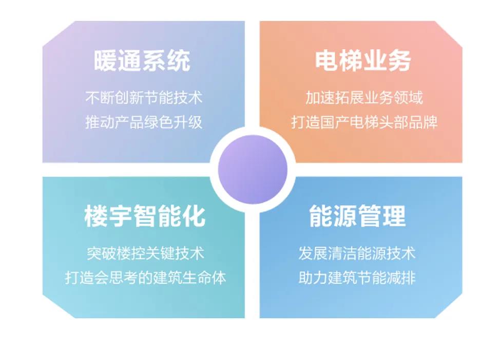 作为暖通及楼宇智慧生态集成解决方案引领者,美的暖通与楼宇将以四大业务板块为依托,不断完善行业解决方案,积极响应碳中和目标,助力智慧建筑和智慧城市建设。