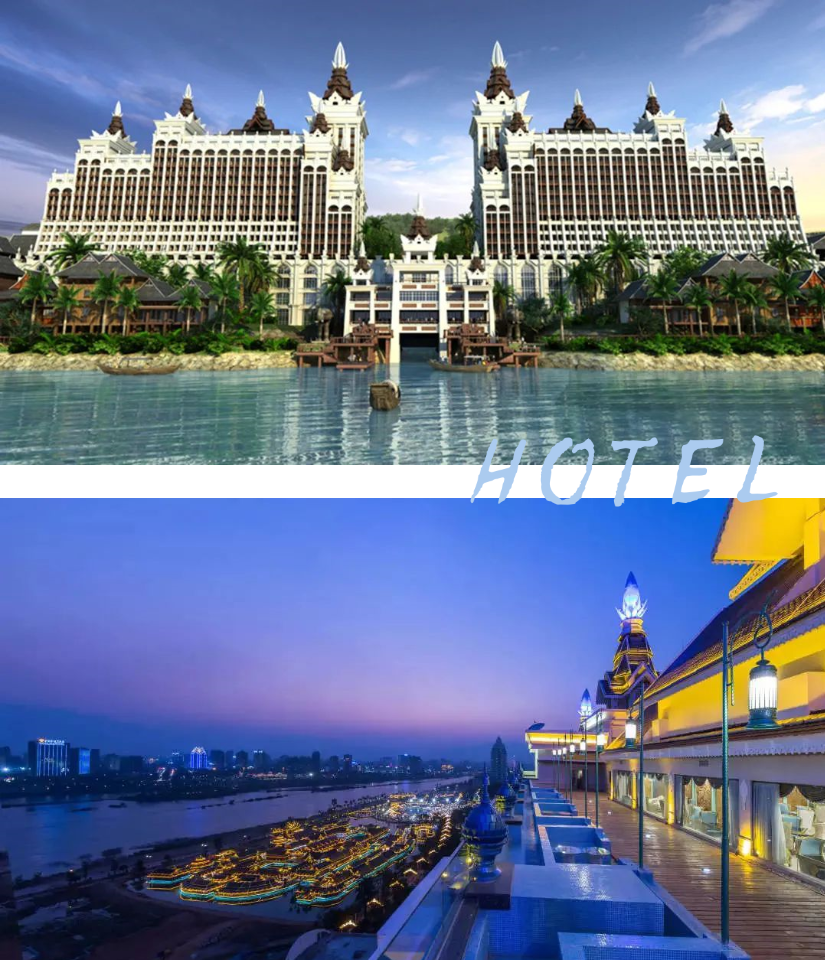告庄西双景坐落于西双版纳澜沧江民族风情旅游度假区核心,是千万游客到达版纳的第一站。告庄有一座如城堡般气派的酒店——告庄西双景湄公河大酒店,紧邻澜沧江侧,可一览江山美景,纵赏六国风情。