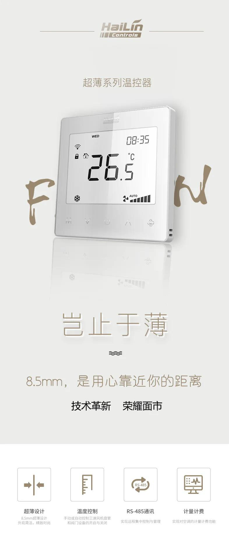 HL8033系列温控器的推出,又一次刷新了行业记录,以8.5mm的厚度带动温控器百年产业向灯光开关插座的厚度“靠齐”,助力地产商实现高品质全装修精工交付标准。
