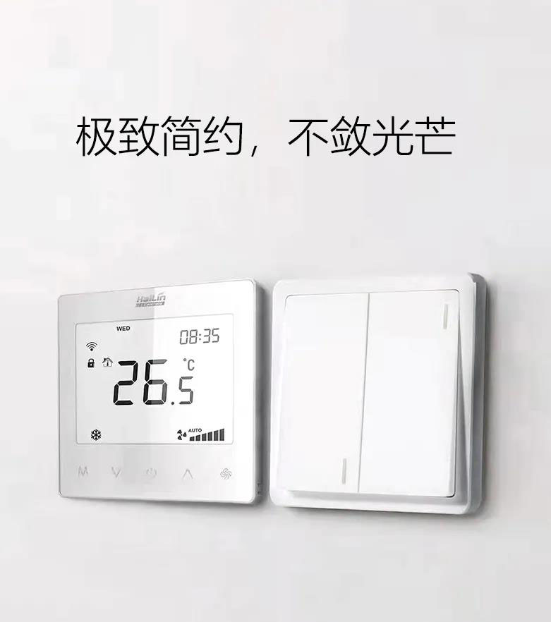 海林HL8033系列温控器适用于工业、商业及家庭居室的温度控制,控制普通交流三速风机盘 管和阀门设备的开启与关闭。
