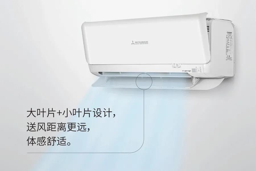 三菱重工空调在出风口采用大叶片+小叶片的双层叶片设计,在风量不变的情况下,合理引导气流,大幅降低“呼啸”声,并且送风更远,使凉风可以充盈整个房间。
