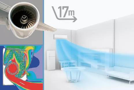 源自于三菱重工空气动力实验室的JET飞机引擎喷流技术,从先进的空气动力学设计中获得灵感,三菱重工空调优化了空调风道,均匀气流,合理空气动力学设计不仅能带来超长距离的无死角送风体验,还能在增大风量的同时有效降低噪音。