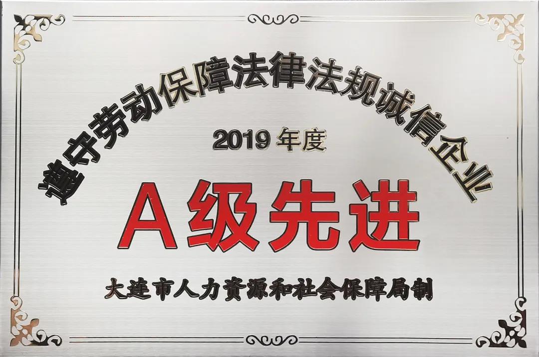 近日,经大连市人力资源和社会保障局及大连市总工会审核,并在大连日报及网上公示后,松下压缩机荣获 “2019年度遵守劳动保障法律法规诚信企业A级先进”称号,公司范文董事长被评为诚信法人代表。