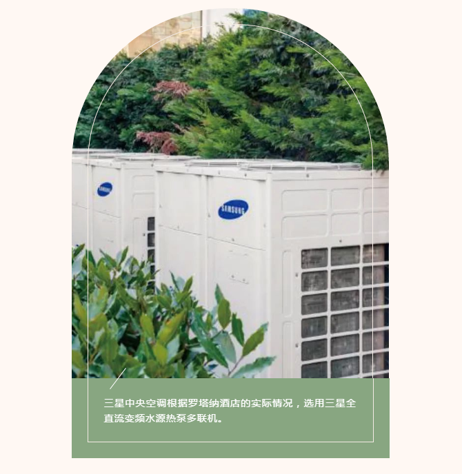 “好的酒店服务,是游客不必刻意感受不由自主地沉浸在舒适愉快的环境中,所以,我们对中央空调系统的要求同样如此,三星中央空调隐藏在酒店的各个角落,外观上与室内设计融为一体,内在性能静音高效,在不知不觉中,为旅客提供舒适的居住环境。”