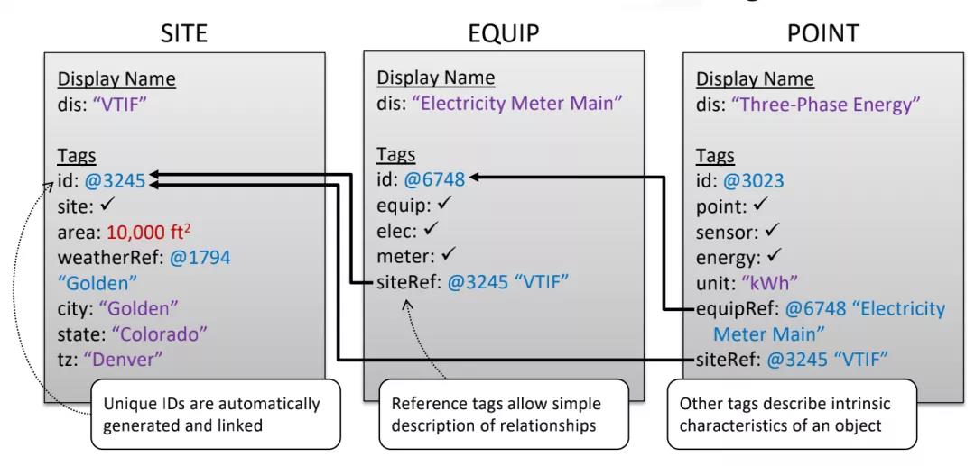用WoT TD来描述相对简单且结构不复杂的设备是可以的,但是建筑是一个相对复杂的综合体,现场环境和部署工艺的差别都导致很多设备设施无法用这种简单结构的WoT TD模型来阐述,这就需要我们引入一种更能描述标记差异特性的语义方法 — Haystack。