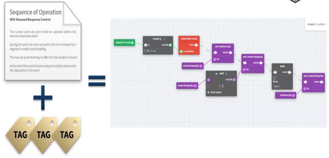 基于这个标签模式,我们也可以大大降低传统现场工程的人力过程。比如通过标签筛选,批量创建规则条件,过滤后,匹配到实际的操作对象,减少之前纯手工部署的大量重复工作。通过使用标签,美的结合自身的暖通自控行业经验,可以将故障诊断 (FDD)和能源优化的算法发挥更大的效果。