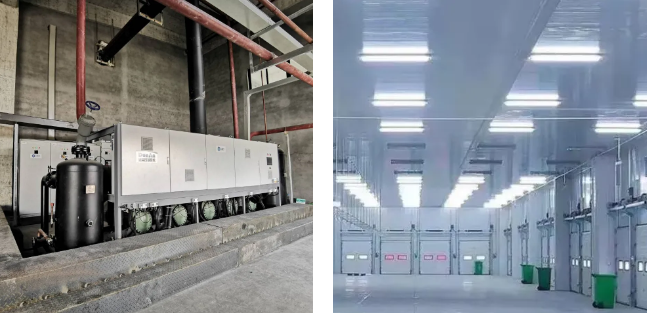 项目使用盾安冷链系统提供的氟利昂螺杆并联机组+R507冷风机组合方案。