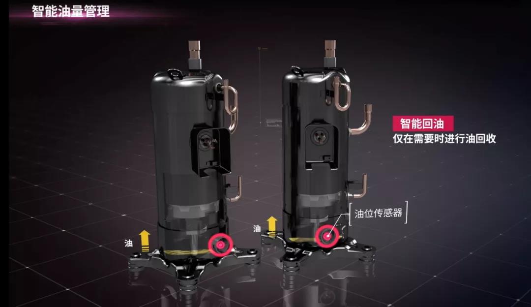 MULTI V 5 MVS压缩机底部设置了油位传感器,时时感知压缩机内部的油位水平,只有当内部油位低于设定油位水平时,才进行回油,可有效提升机组的效率,并且可以保护压缩机始终处于良好的润滑环境中。