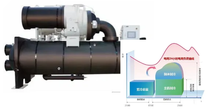 该项目使用了顿汉布什的宽压比离心式双工况机组,为区域集中供冷。从能源系统整体运行经济性出发,利用谷电时段(23:00~次日7:00)的低价市电运行蓄冰机组蓄冰,次日白天平峰电价时段冰槽释冷,降低总装机容量,减少运行费用。结合顿汉布什双级离心压缩技术、变频技术、在线小球清洗技术也能大幅降低后期运营费用。