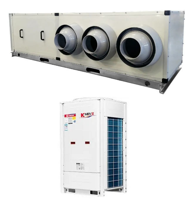 现代高大空间建筑的特点为层高较高,进深较大,一般的采暖制冷空调器只能保证建筑内的温湿度,仅仅是对室内的循环空气进行制热或制冷,这样就导致了室内空气的新鲜度较低,新风量不达标。