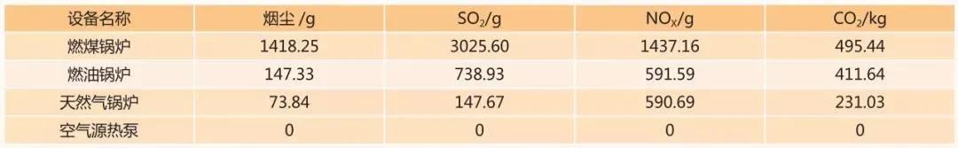 以上为不同供暖方案制取1000kw制热量的环境污染情况