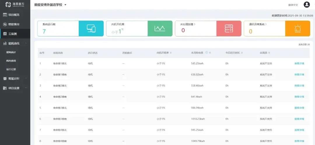 学校教室区和宿舍区空调使用情况和使用时间不统一,需要对空调系统进行集中分区管理,项目安装了海尔物联云服务模块,可实现远程可控、远程可视、开放物联等功能。