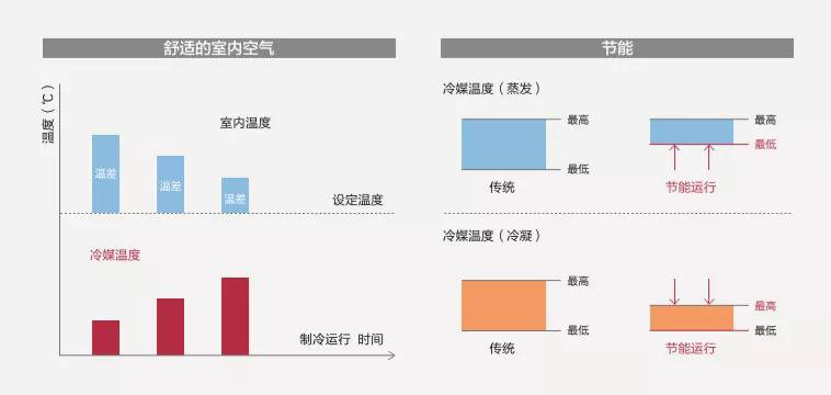 普通分体式空调在制冷或制热时往往气流无法均衡循环,时常会出现温度分布不均匀的情况,舒适度大大降低。