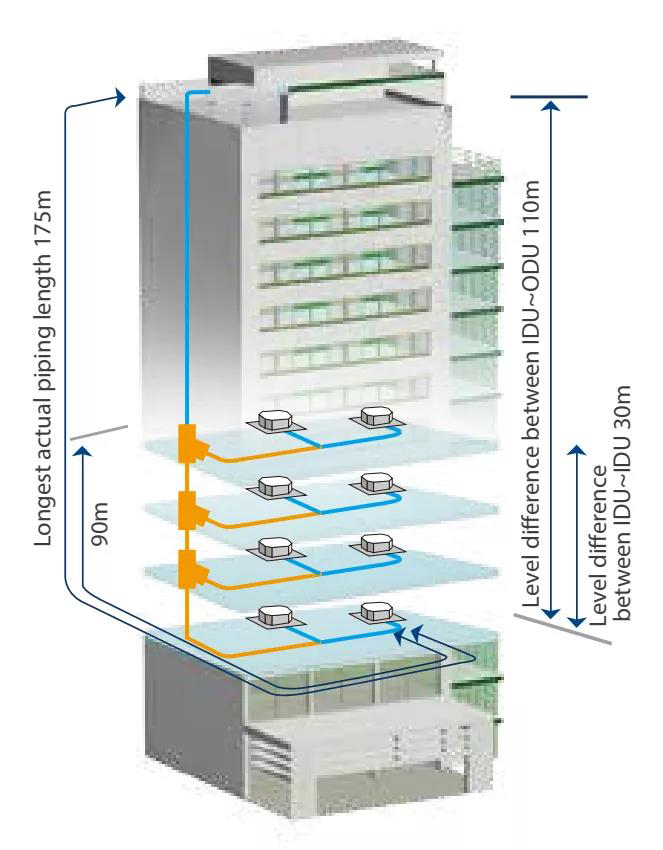 强劲制冷:美的VC Pro系列多联机搭载的MCLCS多流道芯片液冷技术可及时冷却电控部件,使电控零件的平均温度降低8度左右,即使在55℃的环境下也能保持强劲制冷,无惧中东地区的高温气候;单台设备最大容量达30HP,管道输送总长度可达1000米,满足大型展馆的制冷需求。
