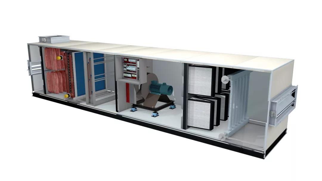 机组采用三级过滤器:初效G4+中效F8+高效H13,对0.3μm颗粒过滤效率高达99.99%,满足车间空气洁净高等级要求。