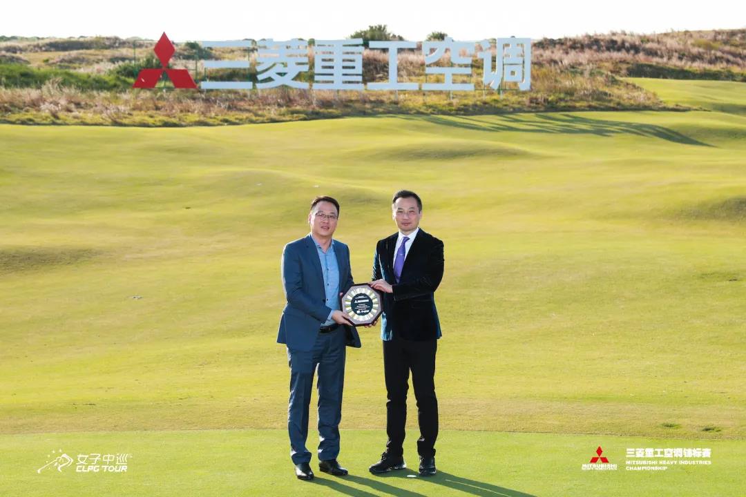 仪式开始,由潘仲光先生为李翔先生赠送赞助商感谢牌,以感谢三菱重工空调对中国高尔夫运动的鼎力支持,并不断加码成功举办本届三菱重工空调锦标赛。