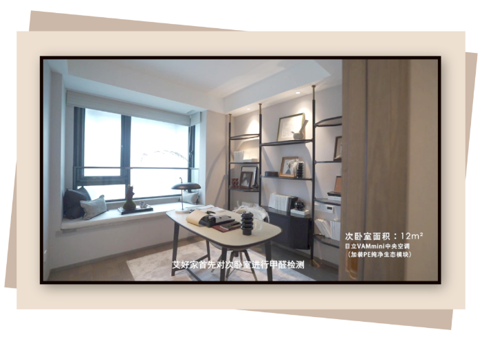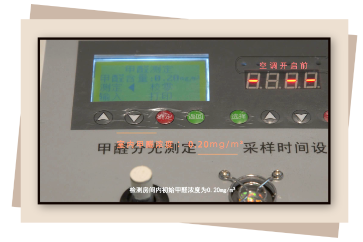 除甲醛评测样板间的12㎡卧室,测得初始甲醛浓度为0.2mg/m³ ,远达不到国家规定的0.08 mg/m³入住标准。
