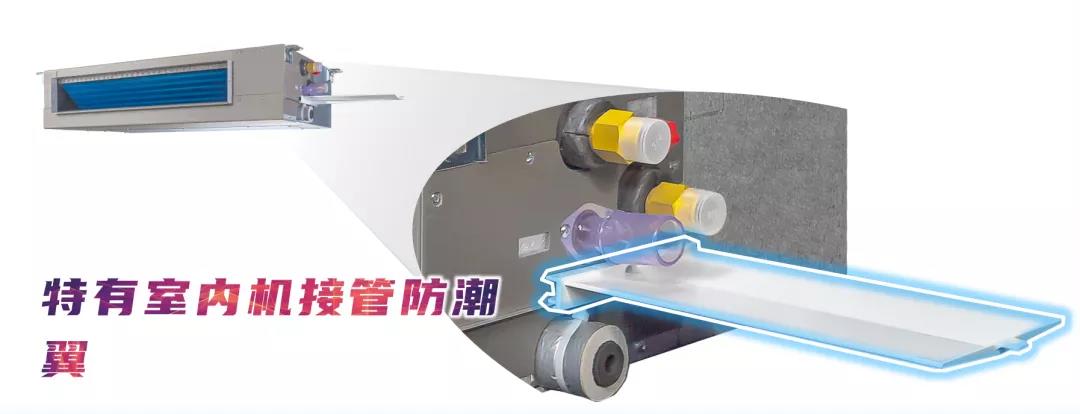 更有创新室内机接管防潮翼设计,杜绝了传统风盘在接管处的凝露风险,避免吊顶受潮污损,使用时更健康安心!