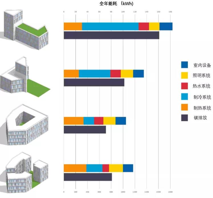 过往传统的概念设计阶段耗时很长,设计师需要制作不同的物理模型进行验证。对每一种方案,设计师需要考虑很多不同因素的影响,例如容积率、功能分区、人流活动、立面墙体设计等。任何一个因素的改变都会造成牵一发而动全身的影响。假设建筑的层高发生变化,就会导致容积率的改变,建筑使用方式、全年能耗也会随之变化。现在通过能耗仿真手段,设计师可以对比海量的方案,找到最理想的建筑造型。