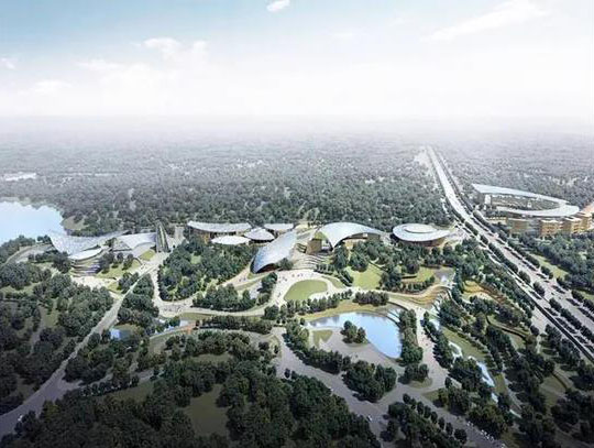 “一园两中心”项目是益阳市“十三五”规划的重大项目,由梓山湖生态公园、益阳市市民文化中心、益阳市市民服务中心三部分组成。项目设计以洞庭渔歌为主题,“两中心”建筑群在布局上沿山脊呈线性排布,建筑单体在形态意向上取自“一群鱼”的理念,彰显“洞庭渔歌”的湖区文化传统概念。建筑群高低错落,呈流线型布局,起伏的屋面营造出鱼群顺流入湖的鱼欢水跃场面,也突显了益阳乃“鱼米之乡”的吉祥寓意。
