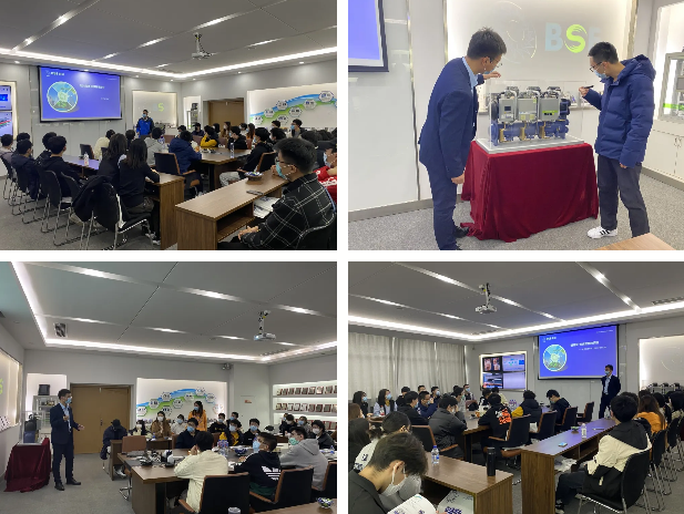 必信为前来参观的同学们准备了丰富的学习内容,由两位技术工程师苏鹏飞和张双锋为苏州大学的师生们讲解了制冷技术原理、磁悬浮技术发展历程以及磁悬浮技术的产品,并结合应用案例分析了必信磁悬浮产品的特点与优势。此外,在讲解的过程中,两位技术工程师还通过现场提问的形式让学生更深刻的了解磁悬浮技术和产品。
